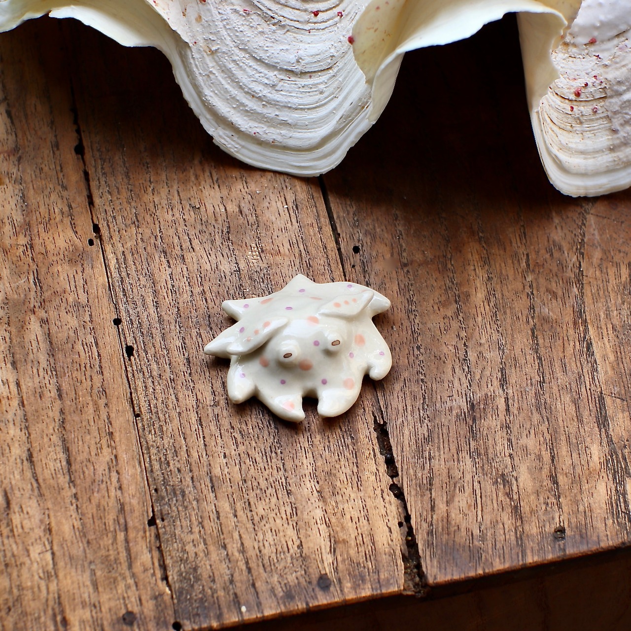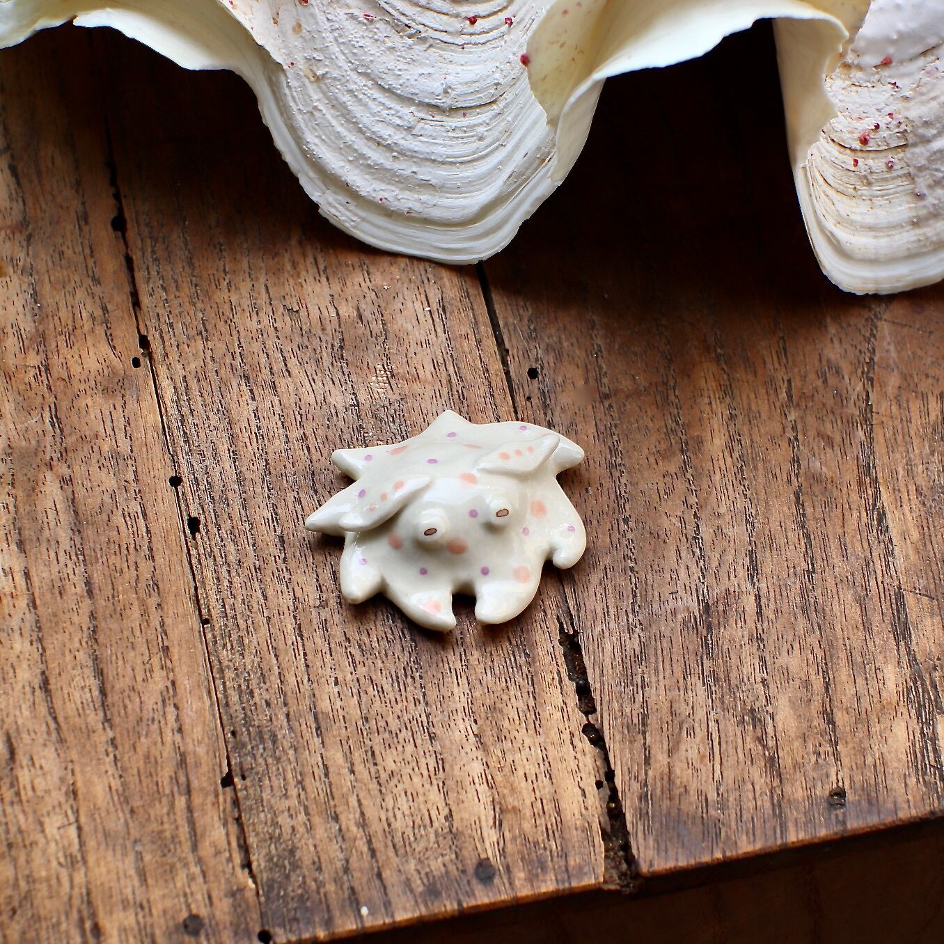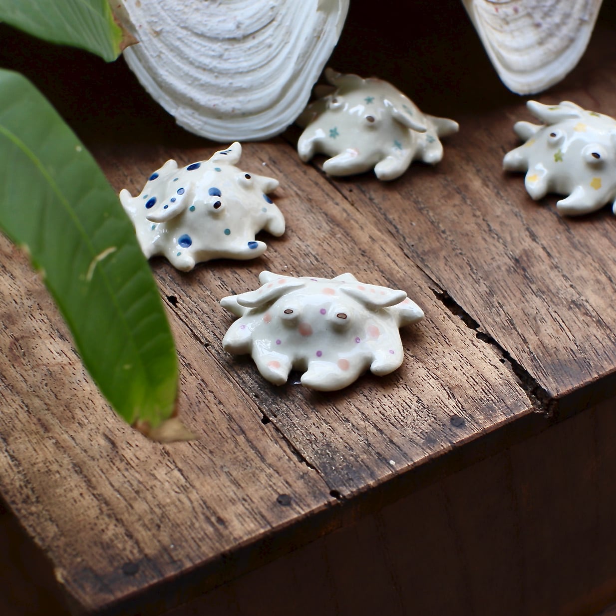 「通り過ぎても心の片隅に残ってしまうようなもの」をコンセプトに、海の生き物を中心とした陶小物を制作しています。形はデフォルメし過ぎないよう、この生き物の特徴はどこなのか?を探りながら作り、金彩や絵付けを施しています。お迎えくださった皆さまのもとで、少しでも笑みを増やす種になったらいいな、と願っております」