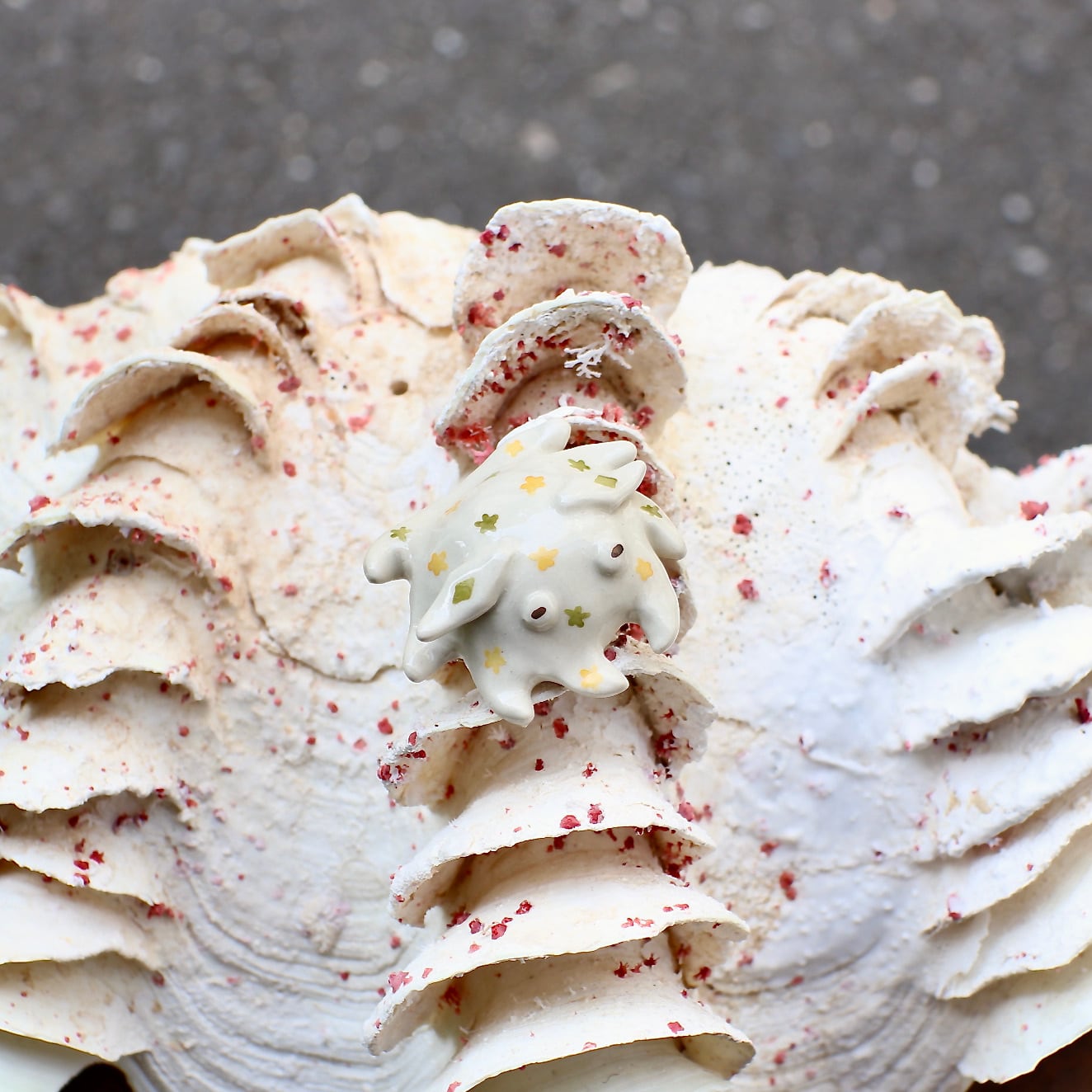 せぴあさんは、海の生き物やキノコ類を、ポップな色使いとディテールにこだわった造形で表現する注目の作家です。興味の赴くまま手を動かし、納得がいくまで手間を惜しまない集中力の高さには驚かされます。作品のほとんどは箸置きとして制作されていますが、完成度の高さから観賞用に愉しむというお客様も多くいらっしゃいます。