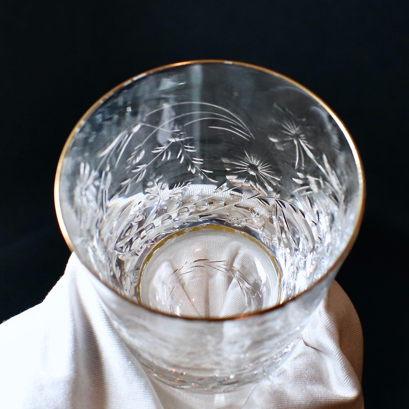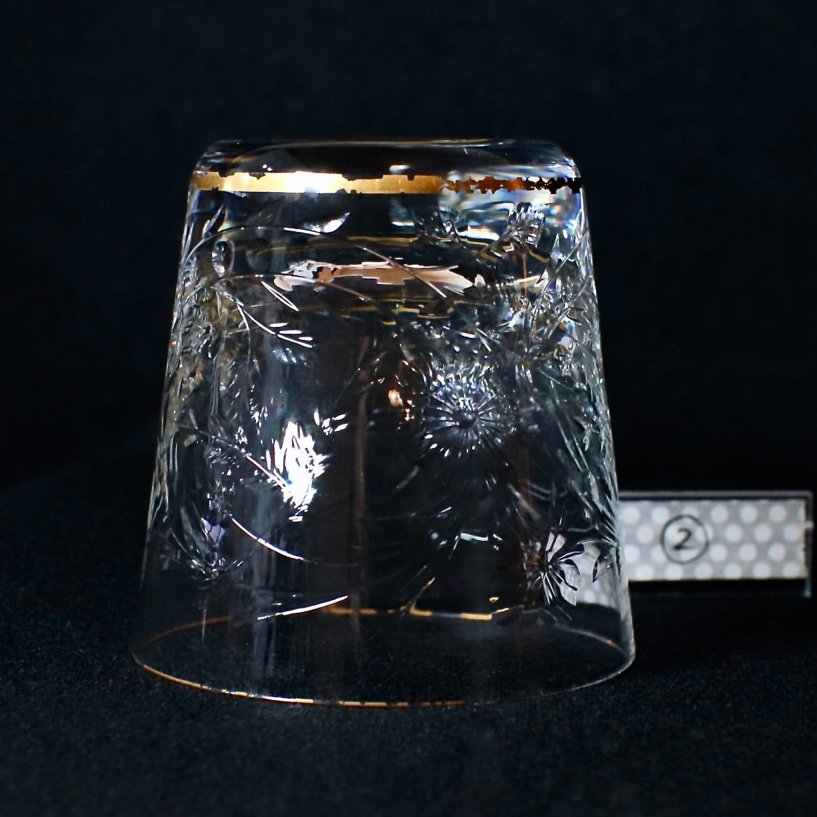 ✅コンディション:美品ではない。グラスのボトム部分に施されたゴールドトリムに断続的な剥がれあり(画像参照)。リム部分(口縁)にも同じような金彩剥がれがございます(画像参照)。
