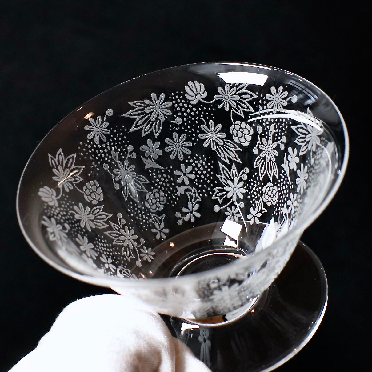 ✅コンディション:非常に良い。グラス全体にヒビやチップなど「クラック」、「カジリ」、「欠け」は認められません。サンドブラストの小花紋様が見事です。